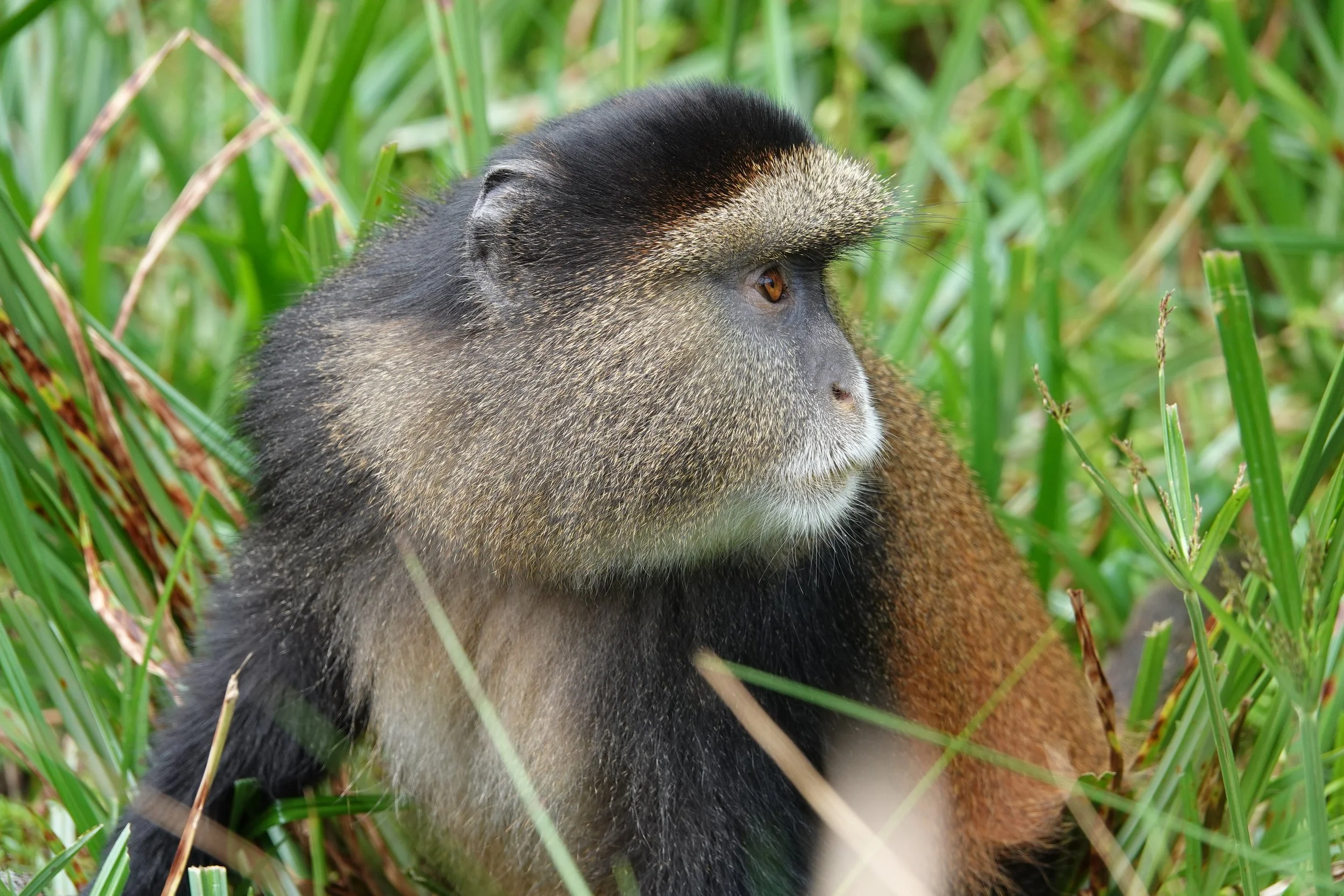 Just when we thought nothing could surpass those moments, we set out for our golden monkey trek. It was fascinating to see them flittering around trees, and to our astonishment, several dozen golden monkeys descended and congregated in a small meadow, darting around us right at our feet with playful abandon. It felt like we had stepped inside a living storybook.
